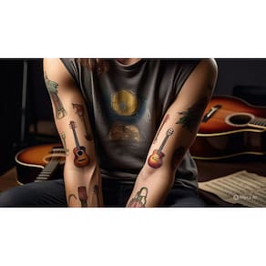 Adicione um toque de música à sua pele com nossas tatuagens temporárias de símbolos musicais Esta folha A4 contém uma variedade de designs incríveis para você expressar sua paixão pela música.