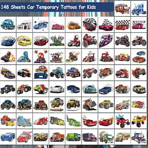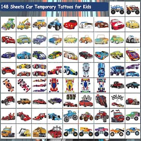 - ? O conjunto inclui 148 tatuagens temporárias de estilos mistos de carros para crianças -- Tatuagens temporárias infantis super legais e divertidas. Este conjunto de adesivos de tatuagem contém muitos elementos divertidos que as crianças vão gostar (Race Car, Monster Truck, GoKart, Dirt Bike, Checkered Flags...). Adicione um toque extra de diversão individual a uma festa ou evento infantil com os adesivos de tatuagem CHARLENT.