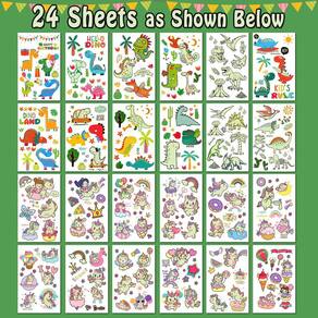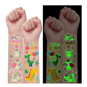 Tatuagens luminosas de unicórnio e dinossauro de 215 estilos para crianças em 24 folhas.