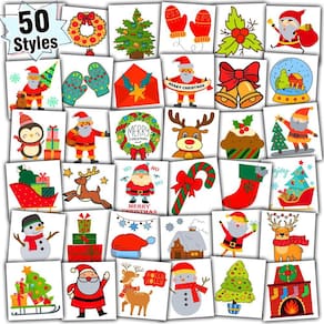 50 lençóis diferentes, lindas tatuagens temporárias de Natal para crianças, meninos e meninas. (Lençóis embalados individualmente)