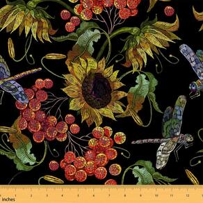Tecido Castle Fairy Sunflowers, aquarela, 1 jarda, 100% poliéster