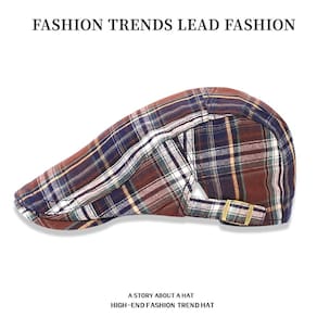Material: poliéster Tamanho: circunferência do boné 56 a 58 cm Profundidade do boné 11 cm Largura 23 cm Peso: 70 g Design xadrez clássico: com um padrão xadrez atemporal com tons terrosos, este boné plano oferece uma aparência sofisticada e casual, adequada para várias ocasiões. Tecido de algodão confortável: feito de algodão macio e respirável, este boné garante conforto e durabilidade por longas horas de uso, especialmente em climas mais quentes. Ajuste ajustável: equipado com uma alça ajustável, este boné plano oferece um ajuste personalizável, garantindo que ele se adapte a uma variedade de tamanhos de cabeça. Estilo versátil: perfeito para passeios casuais, dirigir ou desfrutar de atividades ao ar livre, este boné complementa roupas elegantes e casuais. Look atemporal de Gatsby: o estilo clássico de jornaleiro Gatsby, combinado com um design xadrez, torna este boné um acessório perfeito para homens que apreciam o charme vintage com um toque moderno.
