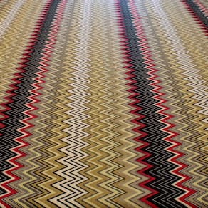 Tecido decoração estampado zigzag vermelho e caramelo