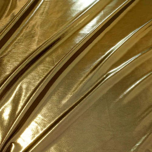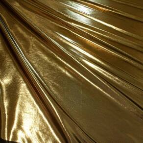 Tecido Lame Com Brilho Metalizado Dourado Liso 14M- 14 Metros Tecido Lame Com Brilho Metalizado Dourado Liso O lamê é um tecido brilhoso metalizado muito sofisticado e moderno com excelente caimento e acabamentos em fios metálicos, adornado por lâminas finas douradas utilizado em trajes requintados e textura listrada diagonal. 14 Metros Tecido Lame Com Brilho Metalizado Dourado Marca: tecidosmodeloModelo: lamê douradoComposição: 100% poliésterLargura: 1,50 metros de larguraGramatura: 150 gramas por metro linearCor: dourado Aplicação: confecção de roupas extravagantes, confecção de vestidos de festa, roupas de luxo e requintadas, roupas para coreografia, decoração de eventos, artesanatos, fantasias, entre outras aplicações. Cada unidade de tecido lamê contém 14 metros de comprimento x 1,50 metros de largura, sendo entregue inteiro e sem cortes. Marca: Tecidosmodelo
