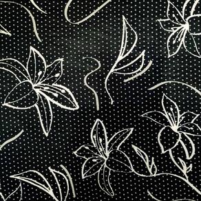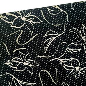 Tecido Malha Fria Liganete Estampado & Lisos - Rolo 4 Metros - Estampa: Flores Brancas Fundo Preto