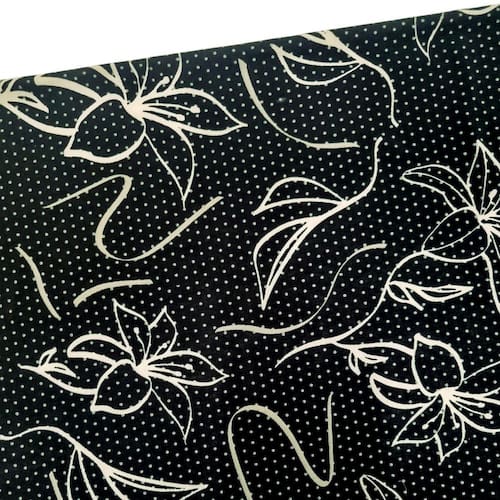 Tecido Malha Liganete Estampado Cores & Estampas - 2 Metros Estampa: Flores Brancas Fundo Preto Tecido Malha Liganete Estampado Cores & Estampas - 2 Metros
