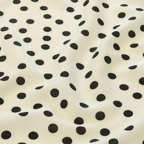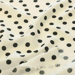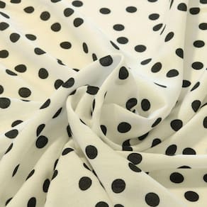 Com uma gramatura de 140 gramas por metro linear, o Tecido Viscolinho Estampado Poa Bolas Preta Fundo Branco possui uma estampa de poá com bolas pretas em um fundo branco. O tamanho das bolinhas é de 1 cm, conferindo um visual delicado e charmoso às peças confeccionadas.