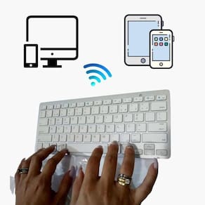 Funcionalidades: Função bluetooth integrado. Ele é totalmente compatível com aparelhos com Bluetooth, como Android e Windows. Sendo necessário que seu aparelho tenha Bluetooth para poder receber o sinal do teclado Bluetooth.