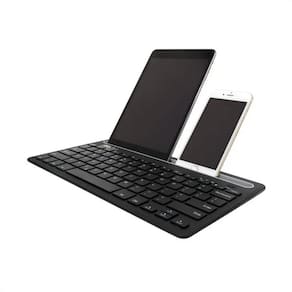 - Possui suporte integrado para manter tablets e smartphones no ângulo ideal para digitação.