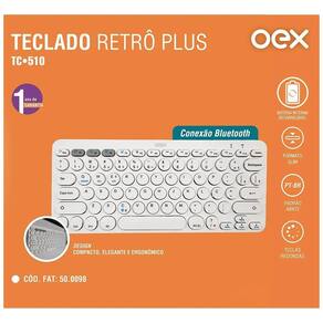 Características:- marca: oex- modelo: tc510especificações:- teclado multimídia- conexão bluetooth- padrão abnt2- alcance máximo de 10m do dispositivo pareado- teclas redondas e silenciosas- 78 teclas- compatível com todas as plataformas- bateria interna de lítio- recarga via type-c- duração da bateria em uso: até uma semana- duração da bateria em stand-by: até 60 dias- material: plástico abs- dimensões: 28,5 x 12,5 x 1,8cm- peso: 355gconteúdo da embalagem:- teclado oex Homologação Anatel: 079902113999 Marca: Não Informado