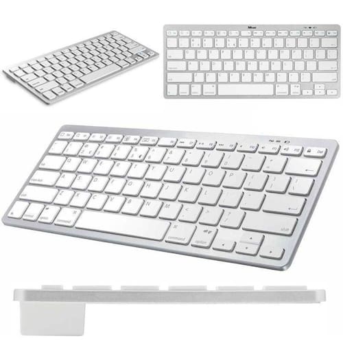 Teclado BluetoothS7 T870/T875 11 Branco O Teclado Bluetooth permite que você digite grandes textos com o conforto de um teclado de computador comum. O Teclado Universal Bluetooth, se adapta a todos os Tablets e Ipads, com ele você terá a facilidade de um notebook em seu Tablet Android ou Ipad. Alcance de transmissão do teclado de até 10 metros, muito compacto, leve, teclado com digitação macia e de belo design. Para conexão ao tablet sem nenhum tipo de adaptador, requer apenas a conectividade Bluetooth. Alimentado por duas pilhas AAA palito NÃO INCLUSAS .