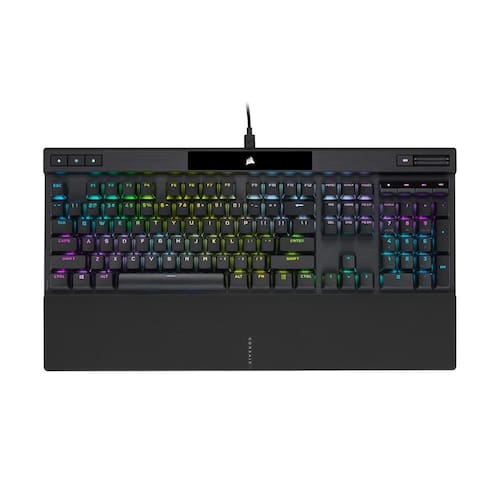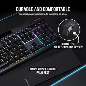 Teclado mecânico para jogos Corsair K70 RGB PRO (interruptores de velocidade CHERRY MX RGB: linear e rápido, hiperpolling de 8.000 Hz, teclas PBT DOUBLE-SHOT PRO, apoio para mãos Soft-Touch) QWERTY, NA - Preto - A lenda continua: o K70 RGB PRO mantém os elementos icônicos do premiado K70 RGB com uma estrutura de alumínio durável, chaves mecânicas CHERRY MX, e iluminação de fundo RGB por tecla. - Equipado com a tecnologia de hiperprocessamento CORSAIR AXON: permite um novo nível de desempenho do K70, processando e transmitindo suas entradas até 8 vezes mais rápido do que os teclados de jogos convencionais. - Interruptores mecânicos 100% CHERRY MX SPEED RGB Silver: oferecem tempos de resposta ultrarrápidos com uma distância de atuação de 1,2 mm e são garantidos para 100 milhões de pressionamentos de tecla. - Teclas de policarbonato com fileira inferior padrão: teclas duráveis de plástico de policarbonato com um layout de linha inferior padrão que suporta conjuntos de teclas personalizados. - Ative a competição: gire o botão do torneio para se concentrar em vencer os jogos cruciais, bloqueando automaticamente a luz de fundo estática sem distrações e desativando as ativações macro acidentais.