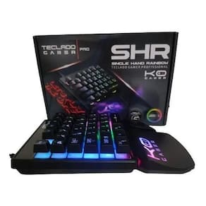 Teclado gamer mão única para video game Teclado gamer one hand mbtech Tenha um espaço mais amplo para jogar e se concentrar em suas partidas em qualquer game, com o teclado de mão única você poderá jogar com mais conforto, respostas rápidas e em qualquer lugar, possui todas as teclas anti-ghosting capacidade de poder apertar várias teclas ao mesmo tempo. As teclas possuem um espaçamento de 7mm, facilitando a sua luta frenética nos jogos. Ficando fácil fazer combinações sem apertar a tecla errada com sua membrana anti-ghosting. Iluminação led rgb e centralizada, luz uniforme para fácil visualização. O melhor desempenho da categoria 3x mais rápido que os teclados convencionais. Teclas riscadas a laser, desenhos perfeitos e anti-respingo. Efeitos de luzA luz de fundo do teclado é controlada da seguinte forma:Fn + caps = efeito de transição de luzFn + esc = liga / desliga o ledCaracterísticas: - base resistente, com membrana e teclas altas.- possui toque suave, com teclas macias e silenciosas- 35 teclas- suporte ergonômico de pulso e mão para descanso.- conexão usb 2.0/3,0- peso leve podendo levar aonde quiser.- 4 pads de borracha antiderrapante.- dimensões aprox. Do produto: 22 x 16 x 3,5 cm.- tamanho do cabo: aprox. 1,70mts- peso: aproximadamente 300g- compatível com todos sistemas operacionais, xone e ps 4.
