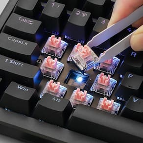 Design: Compacto e elegante Tipo de teclado: Mecânico Switch: Pink Retroiluminação: RGB Distribuição: Inglês Conectividade: USB Tipo-C