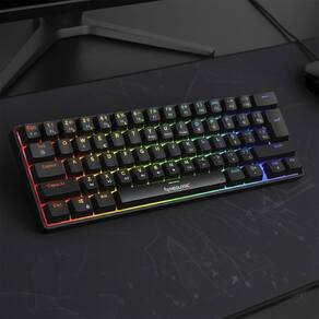 Seja mais Rápido e Preciso Com design minimalista e desempenho avançado, o teclado 60% compacto oferece uma configuração eficiente com 61 teclas mecânicas, ideal para configurações com espaço limitado. Equipado com switches Red ou Blue, conhecido por sua atuação rápida e silenciosa, ele é perfeito para gamers que buscam velocidade e melhorias em cada comando.