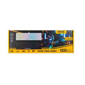 Teclado gamer mecanico spectrafury white kbw8 rbg - Teclado gamer mecânico white kbw88 Um ano de Teclado gamer mecânico com switch blue Padrão abnt 2 Caracteres impressos a laser para maior durabilidade Cor: branco Efeitos de led nas teclas Cores dos leds: amarelo, vermelho, violeta, ciano e rosa Design moderno Função anti-ghosting de 19 dígitos +a+z+w+s+x+e+d+c+b+espaço+seta direcional para cima+seta direcional para baixo+seta Direcional para esquerda + seta direcional para direita + tab + alt l + ctrl l + shift l Teclado gamer mecânico white kbw88 Especificações técnicas Dimensões do produto axlxp : 40x292x100mm Peso do produto: 0,380kg Material da base e teclas: abs Material do cabo: pvc Comprimento do cabo sem conector : 1500mm 50mm tolerância Tensão: 5v via usb Corrente elétrica: 150ma Quantidade de teclas: 61 Fn+ â+ direcional para cima: aumenta a intensidade da luz dos leds. Fn+ â- direcional para baixo: diminui a intensidade da luz dos leds. Fn+ â altera os efeitos de leds e desliga o led do teclado. Informações da embalagem Embalagem individual com 01 uma unidade Dimensões cxlxa : 297x130x43,5mm Peso líquido: 0,380kg Peso bruto: 0,500kg Características gerais do produto: : 180 Marca: Não Informado