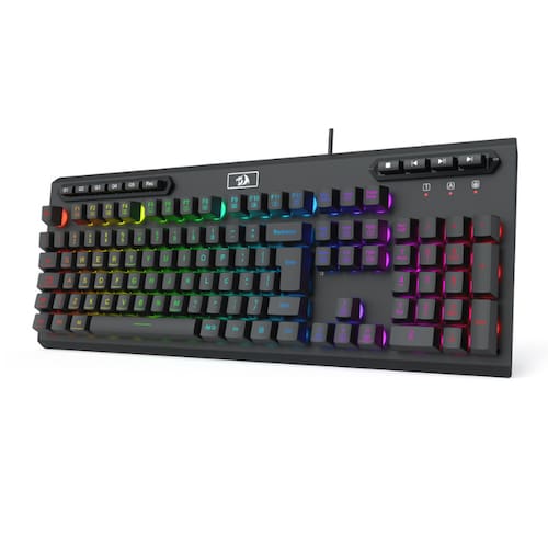 Além da performance, o Redragon Aditya se destaca pelo design elegante com iluminação RGB customizável, que permite criar efeitos de luz personalizados para deixar seu setup ainda mais impressionante. As teclas macros dedicadas facilitam o acesso a comandos rápidos, melhorando a eficiência tanto nos jogos quanto nas atividades diárias. Sua estrutura em metal proporciona durabilidade e resistência, enquanto as keycaps com gravação a laser asseguram uma boa resposta tátil e longevidade do produto.