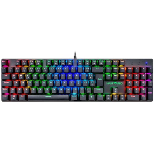 DESCRIÇÃOTECLADO GAMER VIPER PRO MAMBAMecanismo: Mecânico (Switch Blue, Red OUTEMU)Frequência: 50 HzTeclas AntiGhosting: Todo o TecladoTipo de Cabo: Trançado de NylonFormato de Dados: USBSistema: Windows, Linux e MacIluminação: RGBTeclas Multimídia: 12Layout: Full SizeConstrução: AçoCabo: 1,8MOrigem: ImportadoDIMENSÕESAltura: 3,6 cmLargura: 42,6 cmProfundidade: 12 cmPeso: 0,840 kgCor: AZUL - Voltagem: BIVOLT... Marca: VIPER PRO Ean: 7898551181131