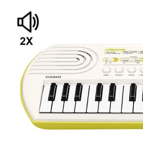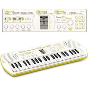 especificações técnicas- marca: casio- modelo: sa-80- cor: branco- número de teclas: 44- polifonia: 32- número de tons: 100- número de ritmos/padrões: 50- músicas integradas: 10- recurso lições: melodia desligada- alto-falante: 8cm x 2- amperagem de saída: 0,8w + 0,8w- alimentação de energia: 2 vias adaptador ca ad-e95100l 9,5 vcc pilhas pilhas alcalinas tipo aa x 6 aproximadamente 12 horas de operação contínua pilhas de níquel-hidreto metálico recarregáveis tipo aa x 6 aproximadamente 10 horas de operação contínua - consumo de energia: 3,8w- dimensões: 604 x 211 x 57 mm- peso: 1,4 kg- efeitos: reverb 4 tipos, desativado - camada/divisão: layer: sim- mudança de oitava: -1 oitava 0 +1 oitava- transposição: -12 semitons a 0 a +12 semitons- controle de afinação: a4 = 415,5440465,9hz- escalas: temperamento igual + 16 variações- metrônomo: 1 a 9 batidas - intervalo de tempo: 20 a 255- visor de cristal líquido: sim- tipo: visor completo- outros: botões de timbres piano, trumpet, drums - desligamento automático: sim- fones/saída: minitomada estéreo