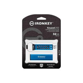 Teclado Kingston Ironkey 200 USB criptografado de 32 GB | Teclado alfanumérico | Acesso com vários pinos | XTS-AES de 256 bits | Certificação FIPS 140-3 de nível 3 | Força bruta e proteção USB ruim | IKKP200/32 GB, azul