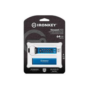 Teclado Kingston Ironkey 200 USB criptografado de 64 GB | Teclado alfanumérico | Acesso com vários pinos | XTS-AES de 256 bits | Certificação FIPS 140-3 de nível 3 | Força bruta e proteção USB ruim | IKKP200/64GB