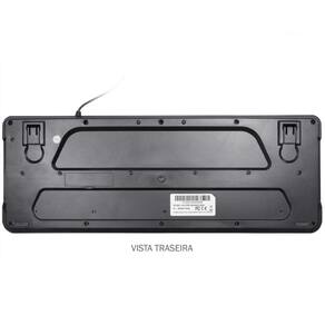 TECLADO KME728 - Teclado multimídia KM-E728Teclado preto com fio padrão ABNT2 com cantos arredondados Teclas com formato esférico Noventa e cinco teclas + doze teclas multimídia Compatível com Windows XP, Vista, 7, 8 e 10 LED verde indicador de Num Lock, Caps Lock e Scroll Lock ativados Caracteres impressos a laser para maior durabilidade Teclado multimídia KM-E728 Especificações técnicas: Teclas com membrana táctil Comprimento do cabo sem conector : 1900mm 50mm tolerância Dimensão do teclado AxLxP : 26x162x438mm Tipo de conector: USB . Plug and play INFORMAÇÕES DA EMBALAGEM: Embalagem individual com 01 uma unidade Dimensões CxLxA : 455x45x192mm Peso líquido: 0,485kg Peso bruto: 0,625kg Características Gerais do Produto: Material: Plastico : 90
