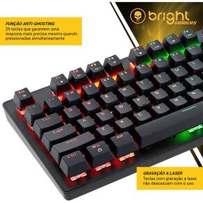 - O teclado mecânico Gamer Compacto GTC559 da Bright é o produto perfeito para gamers, tem um bom desempenho, durabilidade e, por ser compacto, é ideal para pequenos espaços.