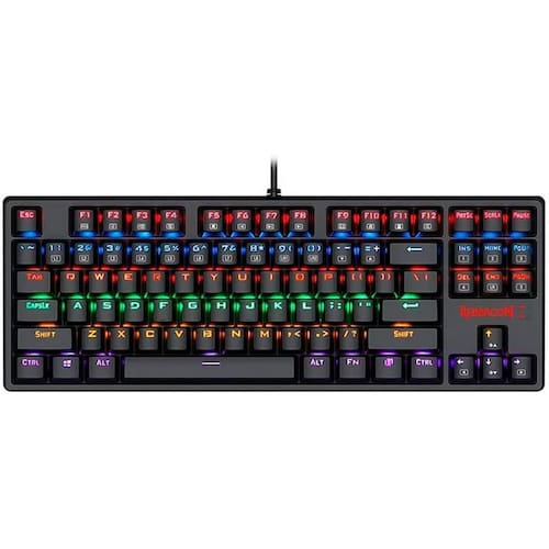 Teclado Mecânico Gamer Redragon Daksa Rainbow, Switch Red, ABNT, Black, K576R- - Layout TKL compacto para maximizar o espaço disponível para o mouse. - Keycaps feitas com o método de double shot injection com legendas que nunca apagam. - Iluminação Rainbow por linha. - Layout ABNT2