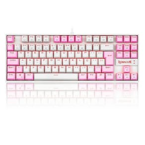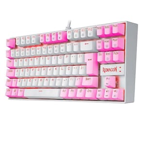 Nome:TECLADO MECÂNICO GAMER SINGLE COLOR REDRAGON KUMARA BRANCO E ROSA COM SWITCH AZUL