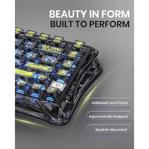 GravaStar Teclado K1 Lite -- Preto transparente - Design elegante e exclusivo: o teclado mecânico GravaStar apresenta um design oco e esquelético que rompe com a estética tradicional do teclado, tornando-o uma peça de destaque em qualquer mesa. Feita de material de PVC durável, a moldura transparente e as teclas maximizam os efeitos RGB da luz de fundo e a aparência resistente ao desgaste. - Experiência de digitação confortável e de alta qualidade: equipado com uma estrutura de junta convencional e interruptores personalizados GravaStar x BSUN, o K1 Lite oferece feedback de teclas suaves e uma experiência de digitação confortável, perfeito para jogos e digitação. O design interno de cinco camadas garante som de tecla de alta qualidade, produzindo áudio nítido e concentrado. - Conectividade trimodo: o teclado GravaStar suporta conexão sem fio de 2,4 GHz (taxa de polling de 1K Hz), Bluetooth 5.0 e conexões com fio (taxa de polling de 8K Hz), oferecendo compatibilidade perfeita com Windows XP Up e MacOS. Pode ser conectado a até três dispositivos ao mesmo tempo e alternar entre eles facilmente por FN e teclas de combinação de teclas. Sem limites sobre a conexão do teclado para atender às necessidades de trabalho, jogos e estudos. - Efeitos de iluminação RGB: o teclado para jogos GravaStar possui 13 modos de iluminação RGB diferentes para escolher, proporcionando uma experiência personalizável e imersiva. Personalização avançada com o software GravaStar Control Center controle completo sobre os efeitos do seu sistema de iluminação RGB, incluindo brilho, velocidade e cor. O aplicativo GravaStar é compatível com todas as versões ativas do Windows, incluindo XP, 7, 8, 8.1, 10 e 11. - Vida útil da bateria confiável: com uma bateria leve de íons de lítio de 4000 mAh, o teclado sem fio GravaStar armazena energia suficiente para que você possa até esquecer que precisa ser carregado. Com até 235 horas entre carregamentos*, ele pode acompanhar as sessões de jogos de maratona mais longas, em qualquer lugar que eles possam levá-lo. Quando finalmente precisar de uma carga, conecte o cabo USB-C incluído para reabastecer sua energia sem interromper o jogo.