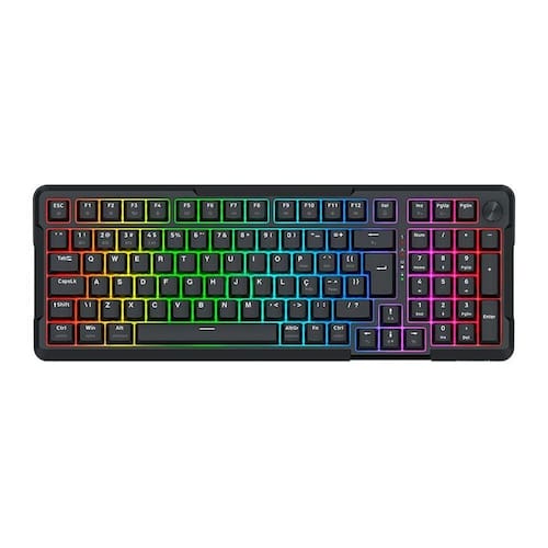 - Keycaps feitas com o método doubleshot injection resultando em legendas duradouras