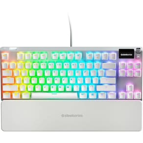 Visor OLED inteligente: Um display OLED integrado exibe informações úteis, como estatísticas de jogo, perfis de teclado e notificações do Discord. Controles de mídia dedicados: Um rolo de metal clicável e teclas de mídia permitem ajustar o volume e as configurações de mídia rapidamente. Roteamento de cabos de três vias: Escolha entre três canais para roteamento de cabos para manter sua mesa organizada. Descanso para pulso magnético premium: Um descanso para pulso macio e confortável fornece suporte para suas mãos durante longas sessões de jogo ou digitação. Compatibilidade com software SteelSeries Engine: Personalize a iluminação RGB, macros e outras configurações do teclado com o software SteelSeries Engine.