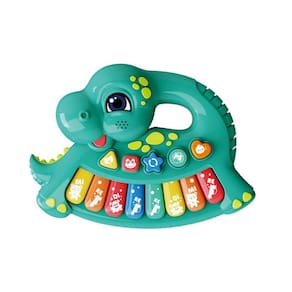 O teclado com formato de Dinossauro deixa a brincadeira muito mais divertida e seu bebê se desenvolve brincando. Ajuda no desenvolvimento da audição, coordenação motora e lógica. Perfeito para desenvolver os sentidos na primeira fase da vida, educativo, didático e bem colorido, estimula a visão, audição e tato. O teclado Dino é um ótimo presente para seu bebê. Com sons de animais, 8 melodias, luzes piscantes e diferentes funções.