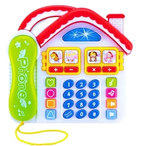 Teclado musical interativo com som e luzes -1400 shiny toys Descrição: Possui 4 modos funções para a criança se divertir modo 1: som, nome dos animais,números, nome dos símbolos da matemática, nome das formas geométricas e jogo de matemática, modo 2: som dos animais com música, nome das formas geométricas com música, barulho das teclas do telefone e jogo de matemática, modo 3: nome das formas geométrica com música, jogo de matemática, teclas tocam música modo 4: jogo onde está. Otelefone faz uma pergunta e você aperta o botão com a resposta funciona com 3 pilhas aa não incluídas