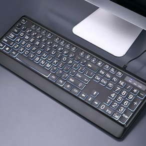 Especialmente desenvolvido para pessoas com baixa visão ou visão subnormal. Possui teclas com letras 4x maiores que os teclados tradicionais, com retro iluminação em led, uniformemente distribuída, ideal para ambientes com pouca luz, podendo ligar/desligar e ajustar a intensidade, garantindo fácil leitura e ótimo conforto visual. Especificações: Teclas com letras grandes, iluminadas com led. Teclas multimidia. Led ajustável liga/desliga/ajuste intensidade . Conexão usb, cabo com 1.35 metros. Teclas macias e suave, com baixo ruído. Padrão us internacional, com acentuação, 104 teclas. Resistente a água. Manual de configuração incluso. Compatível com windows, ou linux.