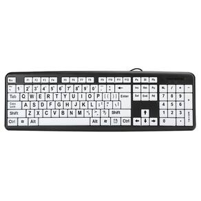 Especialmente desenvolvido para pessoas com baixa visão ou visão subnormal. Possui teclas na cor branca e letras pretas com tamanho aumentado 4x em relação aos tradicionais, possibilitando maior conforto e visibilidade para o uso do computador. Especificações: Teclas na cor branca com com letra grande preta. Modelo slim, mais fino e elegante. Conexão usb, cabo com 1.35 metros. Teclas macias e suave, com baixo ruído. Padrão us internacional, com acentuação. Manual de configuração incluso. Compatível com windows, ou linux. Marca: Não Informado