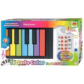 Este teclado é projetado para ser flexível e portátil, permitindo ser transportado para qualquer lugar pois pode ser dobrado e enrolado, tornando-o fácil de armazenar. Com suas teclas coloridas, o Teclado Color Flexível é perfeito para qualquer pessoas que ame música. Ele emite som de piano, xilofone e violino! Você vai adorar a experiência de tocar diferentes instrumentos com apenas um brinquedo, além de ajudar a desenvolver suas habilidades musicais, criatividade e coordenação motora. 01 Teclado Color Flexível 37 teclas Dobrável! Som de piano, violino e xilofone Com músicas demonstrativas Medidas: 63 cm x 16 cm Composição: Plástico Utiliza 3 pilhas AA não incluídas Garantia 90 dias contra defeitos de fabricação Fornecedor: Dm toys
