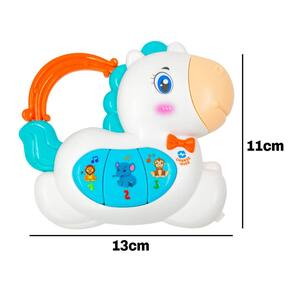 Teclado Piano Musical Bebê Brinquedo Infantil Divertido Som O Brinquedo Musical Teclado estimula a percepção de cores e desenvolvimento sensorial e cognitivo, além de ser uma diversão garantida para crianças. Os Sons emitidos despertam a criatividade dos pequeninos, ajudando no desenvolvimento auditivo e coordenação motora. Com lindas melodias, cores vibrantes, texturas suaves, despertando a atenção e interesse do pequeno. Atenção: Não Recomendado para Menores de 18 Meses Especificações Técnicas: - Modelo: Brinquedo Musical Teclado Cavalinho CY2219 - Material: Plástico, Componentes Eletrônicos. - Funções: 3 com 3 sons diferentes. - Teclas: 4 - Alimentação de Energia: 2 Pilhas AAA(Não Incluso) - Certificação Inmetro / Selo de Segurança: CE-BRI/INNAC - 02484-01A - Dimensões Aprox.: 13cm (Largura) X 11cm (Comprimento) X 3,5cm (Profundidade) - Peso Aprox.: 100g Itens Inclusos na Embalagem: - 01x Brinquedo Musical Teclado Marca: Não Informado