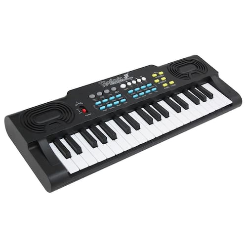 - Marca: Rhythmic - Modelo: Rhythmic Junior - Origem: China - Cor: Preto - Quantidade de teclas: 37 - Quantidade de oitavas: 3 - Tamanho das Teclas: 6,5 x 1,5 cm - Ritmos: 8 - Timbres: 8 - Músicas de Demonstração: 22 - Função de gravação e reprodução - Alimentação: Fonte 5V, 4 Pilhas AA - Entrada Microfone - Dimensões: 42,5 x 15,5 x 4,5 cm - Peso Aprox.: 500 g (sem pilhas)