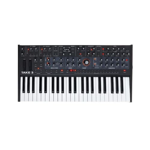 Teclado Sintetizador Sequential Take 5 com 44 Teclas O Sequential Take 5 é a síntese perfeita entre portabilidade e potência, oferecendo uma experiência sonora robusta em um formato compacto. Com 44 teclas de tamanho completo, este sintetizador é a introdução ideal ao mundo da síntese subtrativa e ao som característico da Sequential, oferecendo a mesma qualidade de áudio de seus modelos maiores, mas com a vantagem de um design altamente portátil. Seja você um iniciante ou um que valoriza a economia de espaço, o Take 5 é projetado para ser facilmente transportado entre estúdios e palcos, mantendo todas as funcionalidades e a jogabilidade esperada de um sintetizador de alta performance. Especificações técnicas: - Tipo: Sintetizador analógico polifônico - Número de Teclas: 44 - Tipo de Teclas: Semipesadas - Polifonia: 5 vozes - Osciladores: 2 VCOs analógicos por voz - Formas de Onda dos Osciladores: Seno, dente de serra, pulso de largura variável - Sub-Oscilador: Gerador de sub-oitava em forma de onda quadrada por voz - Filtro: Filtro passa-baixa de 4 polos baseado no design Prophet-5 Rev 4 - Envelopes: Dois geradores de envelope de 5 estágios ADSR + atraso com roteamento variável - LFO: Um LFO global e um por voz, com formas de onda: triângulo, dente de serra, dente de serra reverso, quadrado e aleatório amostra e retenção - Efeitos Digitais: Um reverb dedicado, um multi-efeito com delay estéreo, delay BBD, delay tipo fita, chorus, flanger, phaser, ring mod, alto-falante rotativo vintage, distorção, filtro passa-alto - Efeito Overdrive: Sim - Knob Vintage: Sim - Aftertouch: Aftertouch canal mono com quantidade bipolar - Arpejador: Modos para cima, para baixo, para cima+para baixo, aleatório, sincronizado com o clock MIDI - Sequenciador: Sequenciador polifônico de 64 passos - Memória de Patch: 128 predefinições de fábrica e 128 usuários - Entrada/saída MIDI: 1 Entrada, 1 Saída, 1 Thru - Porta USB: 1 x Tipo B para comunicação MIDI bidirecional - Entradas de Pedal: 1 entrada para pedal de sustain, 1 entrada para pedal de expressão - Saídas de Áudio: Principal estéreo 2 x 1/4 TRS , saída para fones de ouvido 1 x 1/4 TRS - Fonte de Energia: Entrada de energia IEC AC, opera em tensões entre 100 e 240 volts a 50-60 Hz, consumo máximo de 14 watts Dimensões e Peso: - Altura: 11,2 cm - Largura: 63,5 cm - Profundidade: 32,4 cm - Peso: 7,7 kg Itens Inclusos: - Teclado Sintetizador Sequential Take 5 - Cabo de energia IEC AC - Manual do Usuário : - 12 meses de pelo fabricante Origem: - China Imagens meramente ilustrativas.