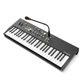 Teclado sintetizador stvc waldorf com vocoder 49 teclas Stvc sintetizador de cordas com vocoder. A seção de cordas começa com um banco de osciladores com divisórias de oitava, seguido por um mixer complexo, um equalizador e o efeito ensemble, assim como as máquinas de cordas dos anos 70. Um único botão de registro varre as configurações do mixer e do equalizador para violino, viola, violoncelo, latão, órgão, coro e muito mais para criar texturas sonoras ricas e cremosas. A seção solo é um sintetizador de 16 vozes que complementa os sons das cordas. Um único botão giratório de tom varre muitas configurações úteis. Solo é o companheiro das cordas, mas é poderoso o suficiente para ser o personagem principal de vez em quando. O vocoder substitui o equalizador na seção de cordas pelo banco de filtros que modela o trato vocal a partir da entrada de voz. Isso pode produzir fala ou canto bastante inteligível usando o banco oscilador totalmente polifônico. Formantes podem ser modificados, o que pode resultar em uma mudança perceptível de gênero. O jitter ajustável dos osciladores das cordas torna a voz rouca, rangente ou um sussurro completo. Solo pode passar pelo vocoder ou tocar em paralelo. Especificações hardware: caixa totalmente metálica teclado com 49 teclas, aftertouch e velocidade transposição do teclado +/- 24 semitons via interruptor dedicado pitch bend e roda de modulação oled de 128x64 pixels 10 potenciômetros, 1 codificador, 9 botões iluminados, 5 interruptores microfone pescoço de ganso de 44 cm com led indicador conexõesconexões: midi in / out usb / alimentação entrada de pedal de sustentação de 6,3 mm 6,3 mm expressão / ext. Sinal saída de fone de ouvido de 3,5 mm 6,3 mm line out left / stereo 6,3 mm line out right / mono conector de microfone xlr no painel frontal motor de som: seção de cordas totalmente polifônica transformação contínua de registro de string seção de solo polifônico de 16 vozes transformação contínua de sons solo tremolo para solo 126 patches programáveis Em três bancos ajuste para modulação e ajustes específicos stvc uivocoder: 256 bandas de filtro excelente inteligibilidade modificação de formante modo de congelamento portadora totalmente polifônica jitter opcional para transportador de string transformação contínua de registro efeitos: efeito de animação para modulação de registro efeito de conjunto / coro para cordas e vocoder efeito phaser para strings e vocoder efeito de reverberação todos os efeitos disponíveis simultaneamente Marca: Waldorf Ean: 4260126380615