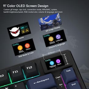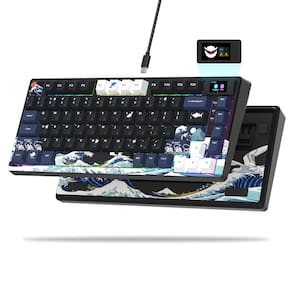 Teclado para jogos XVX/Womier S-K80 de 75% com tela LCD TFT colorida, teclado mecânico que pode ser trocado a quente, teclado personalizado de 82 teclas com retroiluminação RGB, estabilizador pré-lubrificado para Mac/Win - tela OLED de cores vibrantes O design de tela OLED DIY no canto superior direito do teclado permite que você visualize em imagem GIF personalizada, caps lock, modo de conexão, WIN/MAC, sistema, brilho/velocidade da luz de fundo, modo/cor RGB, volume e idioma e muito mais. A altura do ângulo oblíquo de 11° da tela estará mais de acordo com os hábitos visuais. - Teclado mecânico montado em 75% com tema preto O teclado adota as teclas esféricas ASA Profile Art Theme Caps. Experimente o máximo de conforto enquanto joga com o design de encaixe de vedação do S-K80. O teclado possui uma placa de posicionamento em EVA e preenchimento inferior para uma sensação suave e responsiva. O design do suporte de vedação melhora a estabilidade e reduz o ruído de digitação para uma experiência de jogo envolvente. - Teclado personalizado premium que pode ser trocado a quente Os interruptores lineares pré-lubrificados com difusores de luz transparentes voltados para o sul proporcionam uma sensação confortável de pressionamento de tecla, um incrível som de digitação limpo e pronto para uso. O PCB de troca a quente deste teclado montado em gaxeta é compatível com interruptores de 3 ou 5 pinos. - Teclado personalizável do software Pro As configurações de exibição de imagem de fundo RGB, macro e GIF do teclado podem ser totalmente personalizáveis por meio do driver do teclado. Para usuários que desejam personalizar seus teclados, esses designs oferecem mais alternativas. (O modo 'Sincronização de música' permite padrões rítmicos de iluminação a partir da música reproduzida.) - Iluminação de fundo RGB definitiva O teclado tem 19 efeitos de iluminação e 9 cores de iluminação, além das quais o brilho e a taxa de fluxo das luzes do teclado podem ser ajustados. Este teclado temático é compatível com o sistema Mac/Win. A conexão removível TYPE-C oferece a flexibilidade de conectar vários dispositivos, tornando-a uma excelente opção para jogos e uso diário.