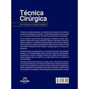 O livro apresenta as bases da anestesia; a importância dos preceitos básicos da infecção e princípios da cirurgia asséptica; os conceitos de infecção de sítio cirúrgico e de infecção em cirurgia; a importância do checklist da cirurgia segura; os fundamentos da diérese, hemostasia e síntese; cirurgia diatérmica e uso de sutura mecânica (grampeadores) além de conceitos sobre os diferentes tipos de materiais (fios/adesivos) e próteses. Destaca o preparo da equipe seguindo os rigores da assepsia e antissepsia, a paramentação cirúrgica, a posição do paciente na mesa operatória e a disposição da equipe; videocirurgia; cirurgia robótica e as diferentes práticas para proporcionar menores riscos. Abrange também aspectos práticos e objetivos, como os procedimentos em regime ambulatorial; os princípios das biópsias e exérese de pequenas lesões cutâneas; o acesso venoso e a cirurgia endovenosa; a traqueostomia/cricotireoidostomia; a centese pleural e abdominal; a toracotomia e laparotomia; as herniorrafias da parede abdominal; a vasectomia e laqueadura tubária no planejamento familiar; opções de sondas e drenos e suas aplicações. Aborda duas situações impactantes, como o conhecimento dos deveres e direitos do cirurgião e as implicações da profissão na sua saúde mental.