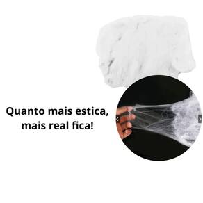 Feita de um material sintético de alta elasticidade, a teia é fácil de esticar e moldar sobre móveis, janelas, portas e cantos, adaptando-se a qualquer espaço. O pacote é suficiente para decorar uma sala inteira ou uma varanda. Perfeita para festas, casas mal-assombradas ou para surpreender a vizinhança, esta teia com aranhas é o segredo para uma decoração de Halloween de sucesso.