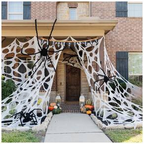 Decorações de Halloween espetaculares ao ar livre: Apare sua casa mal assombrada com essas teias de aranha que são super fáceis de incorporar às suas ideias de decoração de Halloween. Os acessórios na imagem NÃO estão INCLUÍDOS.