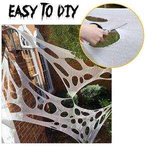 Decorações gigantes da Web da aranha: A teia de aranha vem em forma de tubo, com aproximadamente 4,11 metros de comprimento e 1 metro de largura antes de cortar em pedaços menores. Aranha elástica o mais apertada possível para dar o melhor resultado.