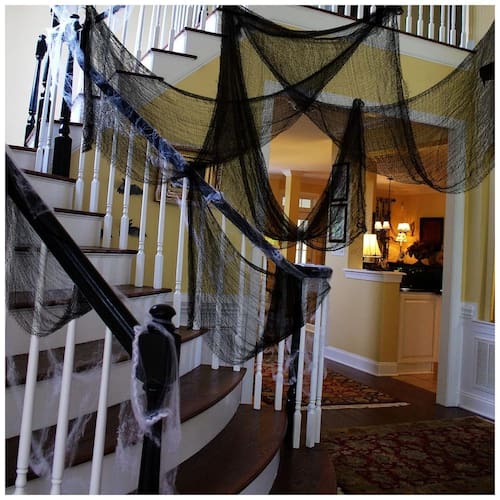 USO MÚLTIPLO:Vista tudo, desde fantasias até casas mal assombradas. Ideal para cobrir portões e entradas, use como capa em adereços, mesas, janelas, lareira, paredes e tetos, fantasias, chapéus, portas e espelhos. Adequado para decorações de Halloween em ambientes internos e externos, festas, quintais e materiais de decoração de jardins