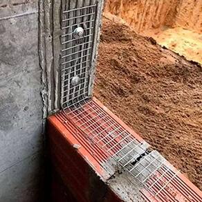 - O tamanho de tela deve ser proporcional a largura da parede. O comprimento total da tela padrão é de 50 cm, ficando com dobra de 10 cm para cima junto ao pilar e outra dobra de 40 cm assentada na junta horizontal entre os blocos; - Para telas acima de 10 cm de largura, normalmente aplica-se 2 pinos com arruela cônica PACX para sua fixação.