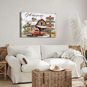 Arte de parede cristã God Says You Are Inspirational Bible Verses Wall Decor for Home Office Religious Rustic Farmhouse Barn Landscape Red Truck Pictures Canvas Artwork Bedroom Kitchen Decorations: