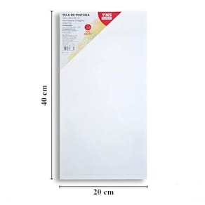 PRINCIPAIS CARACTERÍSTICAS- Medida: 20 x 40 cm- Superfície: 100% algodão de alta qualidade- Gramatura: 280 g/m ? excelente absorção de tinta- Estrutura: Base em MDF resistente e leve- Tela fina, preparada e pronta para uso imediato- com tinta a óleo, acrílica e aquarela- , com e